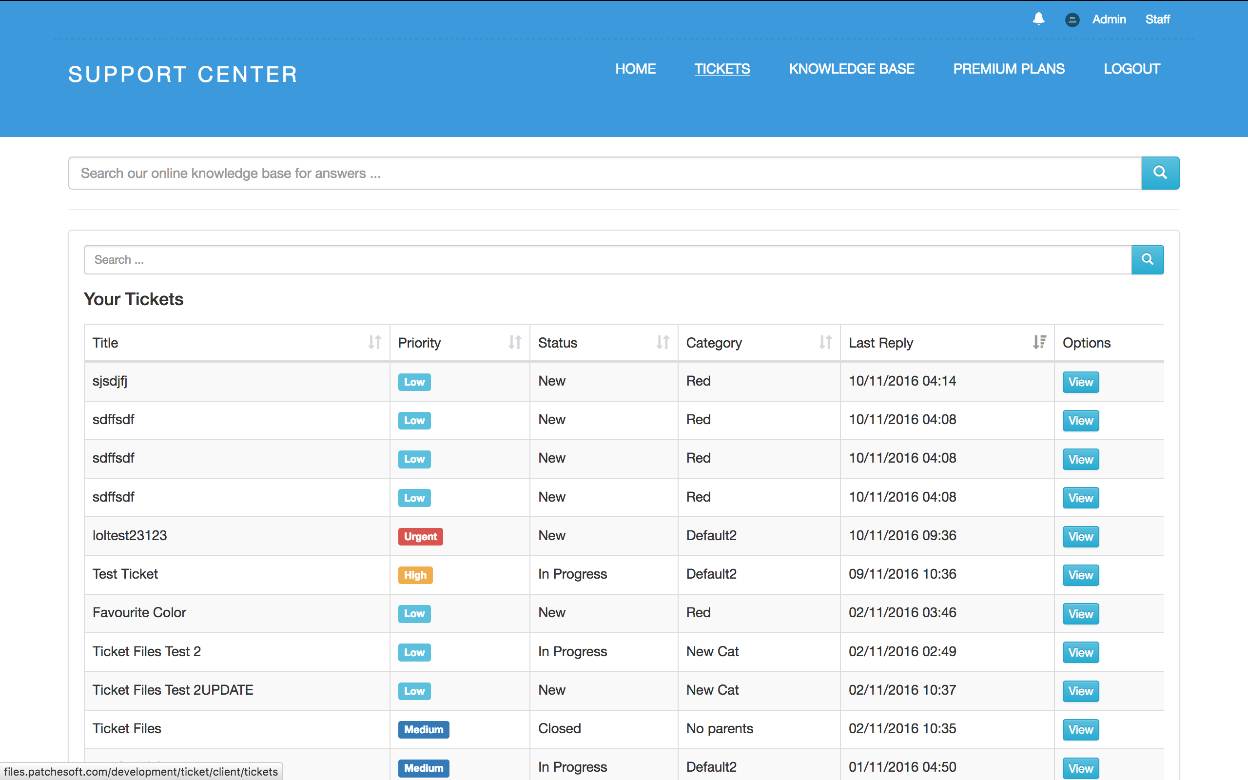 Support Centre is a PHP Ticketing system that allows you to offer support to your customers using our support application. Users can create tickets and staff can respond to them.