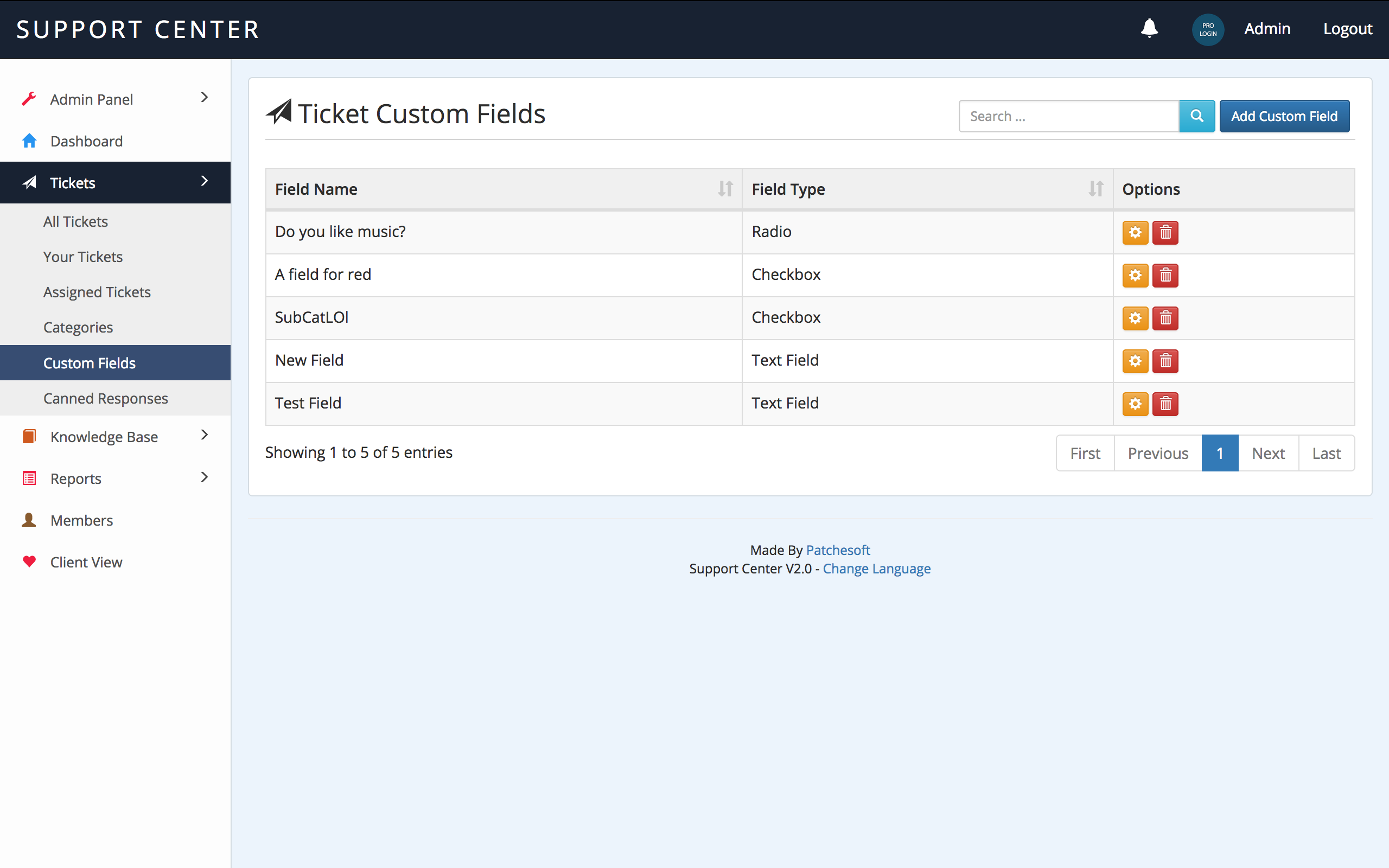 You can also create custom fields for Tickets. These fields are added automatically to the Create Ticket form for your users to fill out. The information can be viewed on the View Ticket page. You have the choice of creating Input fields, textareas, radio fields, checkboxes and select areas.